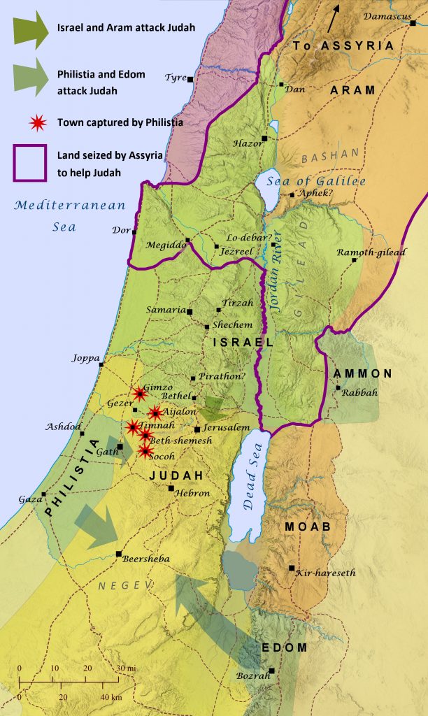 Under King Sennacherib, they invaded Judah in 701 BCE, and conquered many cities, imposing heavy tribute, and devastating the countryside, though they failed to take Jerusalem, leaving Judah as the last Israelite kingdom (see map on the right showing the final days of the northern kingdom) before the Babylonian conquest. This period saw massive deportations of Judeans, economic shifts under Assyrian influence, and intense military confrontations, particularly around Jerusalem, leaving lasting historical and religious legacies documented in biblical texts and Assyrian records.